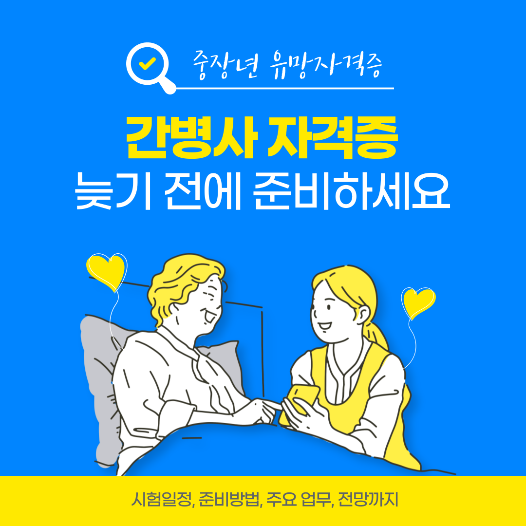 간병사 자격증 요새 각광받는 이유가 있습니다. 노령화사회가 되어가는 반면 힘든 일은 하지 않으려는 사람들의 행태때문이 제일 크죠. 코로나 때에도 중국 간병사들이 대거 차지하고 있어서 문제가 많았는데요. 취득하면 비교적 수월하게 일자리를 구할 수 있을 것이라 생각합니다. 물론 남자 간병사들은 더욱 귀하다니 말다했죠. 지금부터 간병사 자격증 취득방법부터 주요업무, 전망, 취업 정보를 얻는 일자리 사이트들까지 한번에 알려드리도록 하겠습니다.
