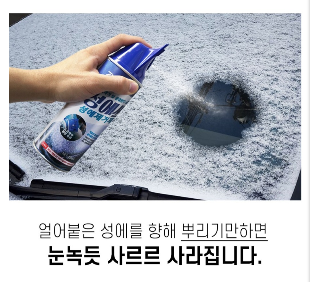 역시나 가장 좋은 방법은 성에제거제 기성품을 사용하는 것입니다. 보통은 성에제거제와 성에제거날을 따로 사시는데 요즘에는 이 두 가지가 합쳐진 성에제거제가 나오기도 하더라고요.