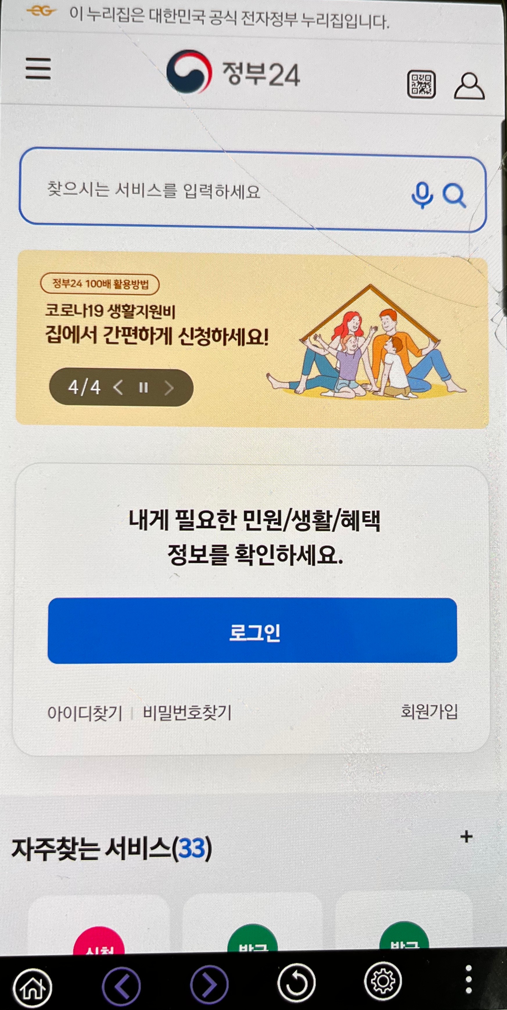 설치가 다 되셨으면 정부24(구 민원24)어플을 열어볼게요.