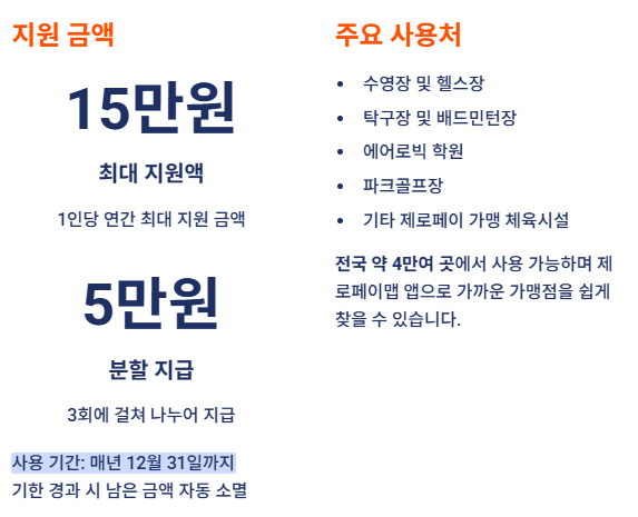 주요 사용처는 수영장, 헬스장, 탁구장, 에어로빅 학원, 파크골프장 등 전국 제로페이 가맹 체육시설 약 4만여 곳에 달하며 제로페이맵 앱을 통해 가까운 가맹점을 쉽고 빠르게 찾아 결제할 수 있습니다.
