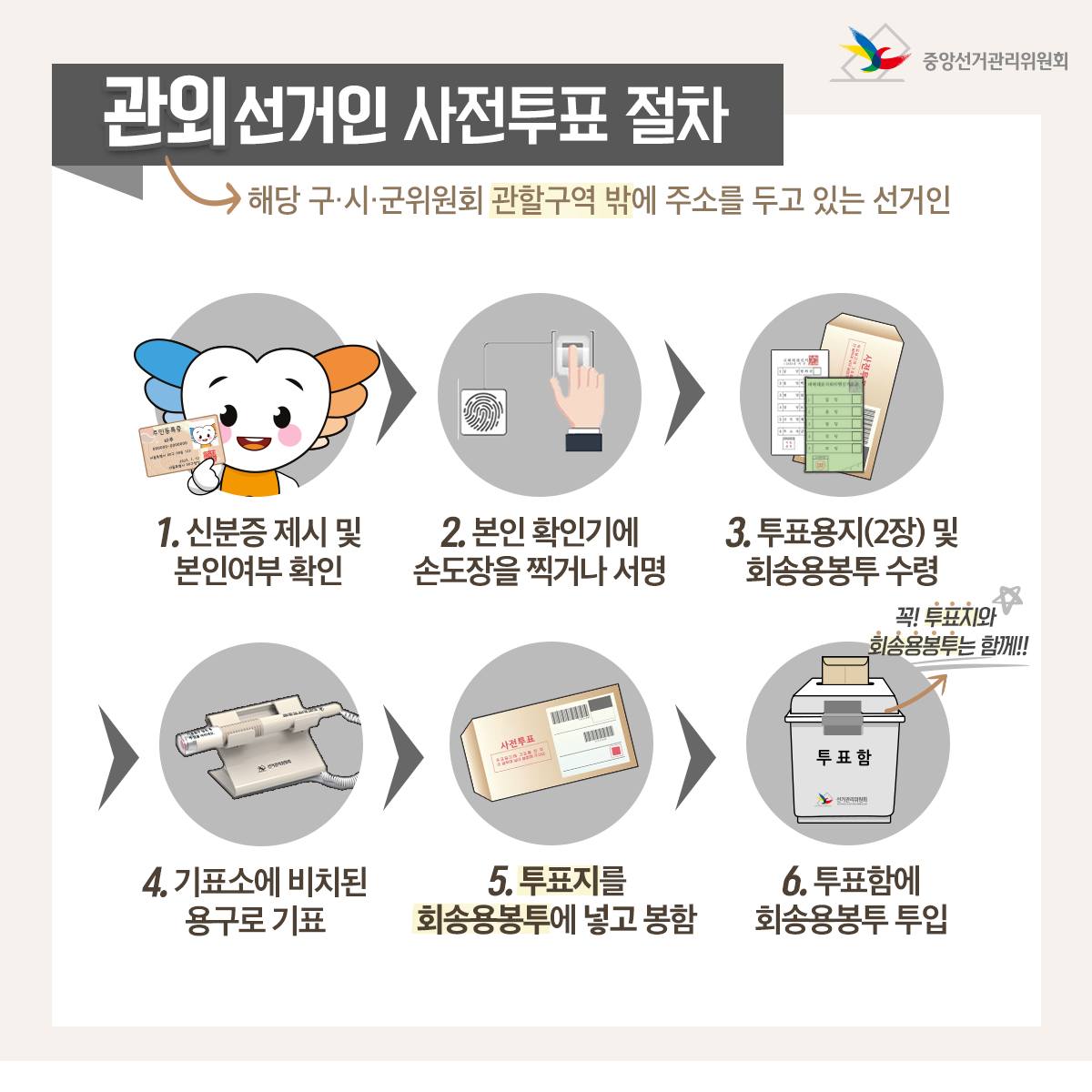 관내선거인일 경우와 관외선거인일 경우로 사전투표 절차가 나뉩니다.