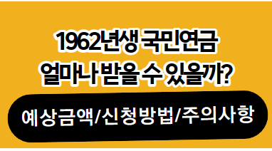 1962년생이라면 올해 62세가 되는 셈인데요. 이제 은퇴를 준비하고 계실 것이라 예상됩니다. 그렇다면 국민연금을 받으실 수 있을까요? 만약 받으실 수 있다면 얼마나 받으실 수 있을까요? 1962년생 국민연금 예상금액부터 신청방법, 필수 주의사항까지 함께 알아보겠습니다.